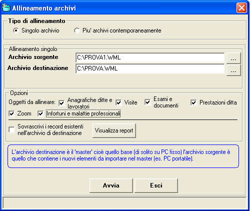 Prima di effettuare l'allineamento occorre fare una copia di backup di entrambi gli archivi.